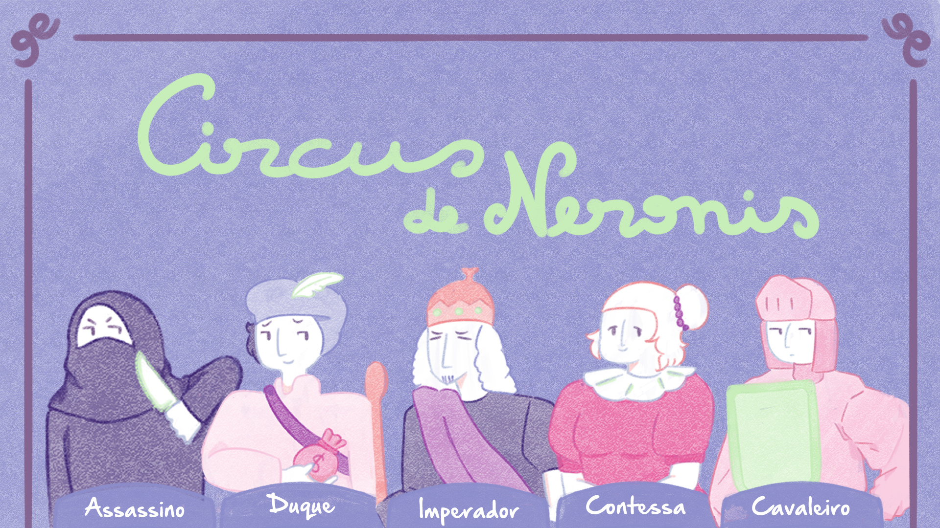 In Circus de Nironis , you want to be the last player standing. The game must be played from 3 to 6 players, each player starts with 2 coins as currency and with 2 cards from the deck each facing down. The deck contains 15 cards with 3 cards of 5 characters, each character with a different capability.
